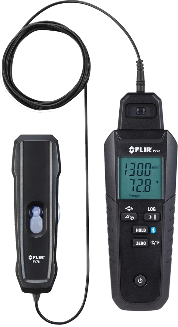 - Odmah mjeri solarnu iradijaciju od 0 W do 1400 W/m² kao što je potrebno prema standardu IEC 62446-1
