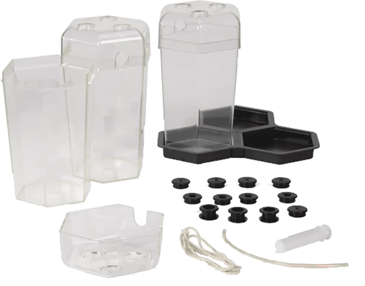 - S tri međusobno povezane komore, učenici mogu modelirati interakcije između tri različita ekosustava. Odaberite tradicionalna terestrička, vodena i raspadajuća okruženja ili stvorite jedinstvene biome za modeliranje i mjerenje. Odvojite sustav za izolirane istrage. Kako dostupnost svjetlosti utječe na ekosustav? Učenici mogu stvoriti dva identična ekosustava za precizno kontroliranje utjecaja varijabli.
