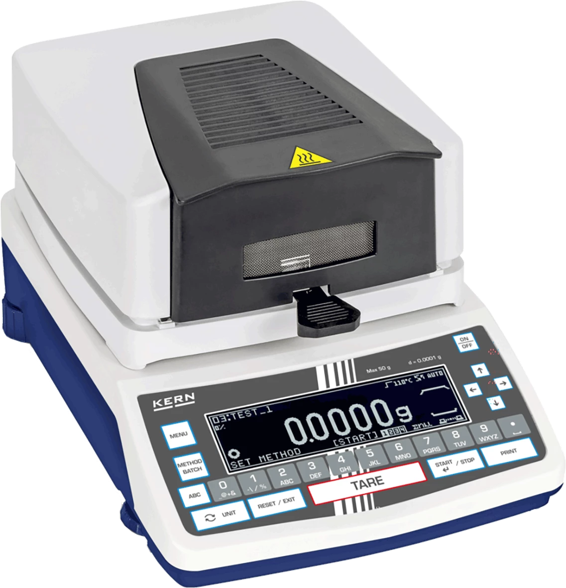 - Intuitivno upravljanje u tri koraka (tara – dodavanje uzorka – pokretanje) za jednostavne i ponovljive analize Prikaz u stvarnom vremenu: Krivulje sušenja se mogu prikazati izravno na zaslonu