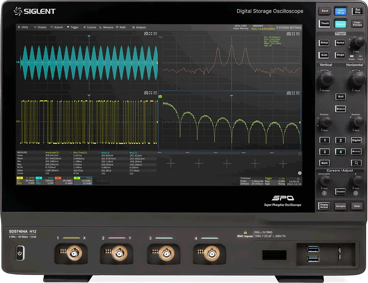 - 4 analognih kanala, sa širinom pojasa do 6 GHz i brzinom uzorkovanja do 20 GSa/s.