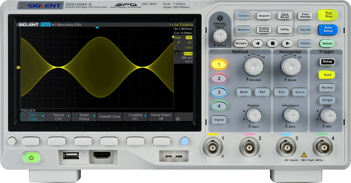 SIGLENT SDS1000X-E je serija digitalnih osciloskopa nove generacije s Super Phosphor tehnologijom, dostupna u verzijama s frekvencijskim opsegom od 100 MHz i 200 MHz, s 2 ili 4 analognih kanala.
