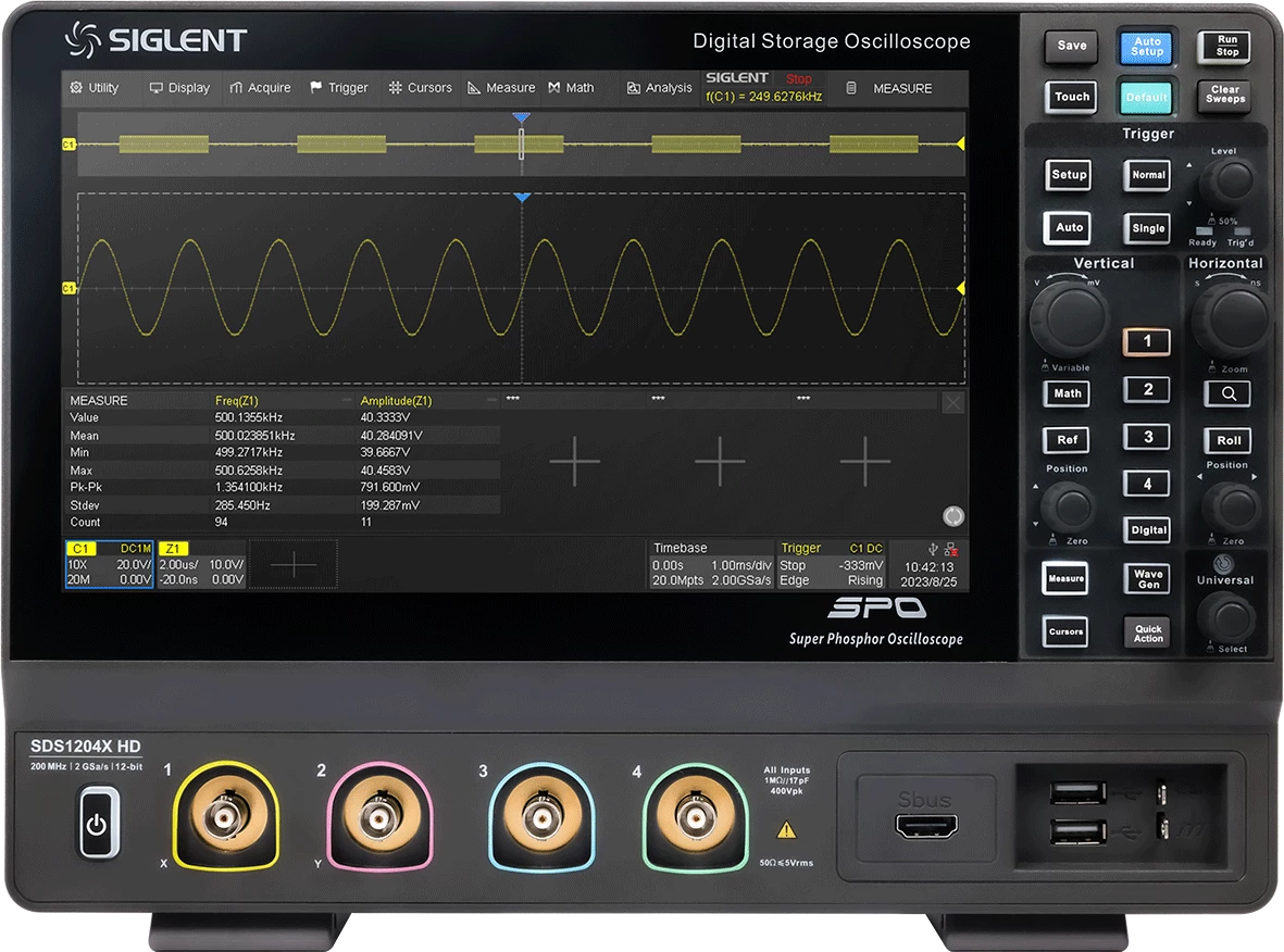 SIGLENT SDS1000X HD serija digitalnih osciloskopa temelji se na 12-bitnim A/D pretvornicima s brzinom uzorkovanja do 2 GSa/s