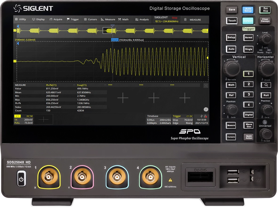 SIGLENT SDS2000X HD serija digitalnih osciloskopa visoke rezolucije zasnovana je na 12-bitnim Analognim-Digitalnim konverterima sa brzinom uzorkovanja do 2 GSa/s 12-bitna visoka rezolucija za precizna mjerenja