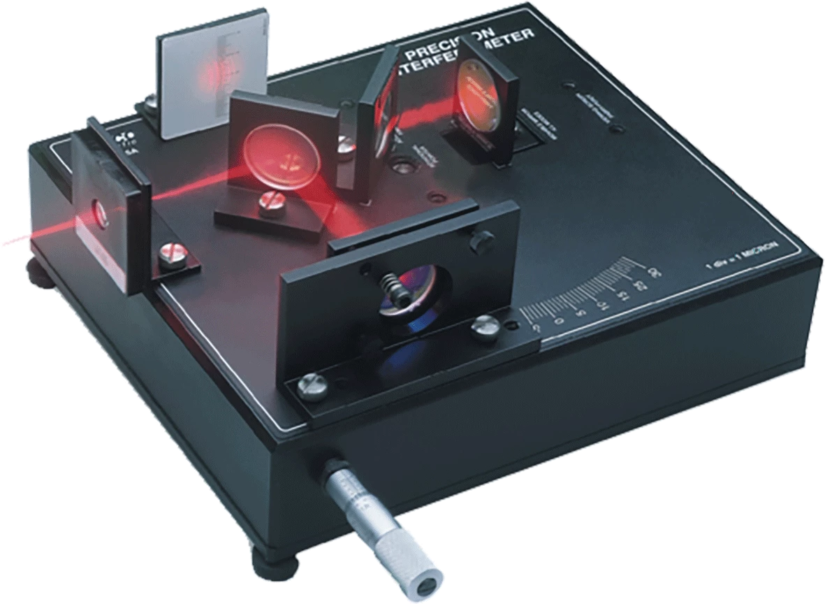 - PASCO Interferometar je visokoprecizan interferometar s pokretnim zrcalom koji se može koristiti za izvođenje Michelsonove, Fabry-Perotove i Twyman-Greenove interferometrije. Zrcala su pričvršćena palčanim vijcima, pa je postavljanje i mijenjanje konfiguracija lako.